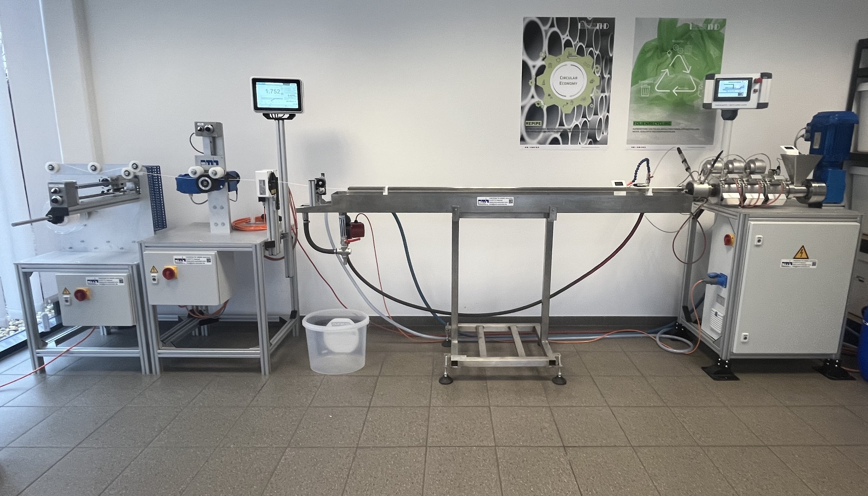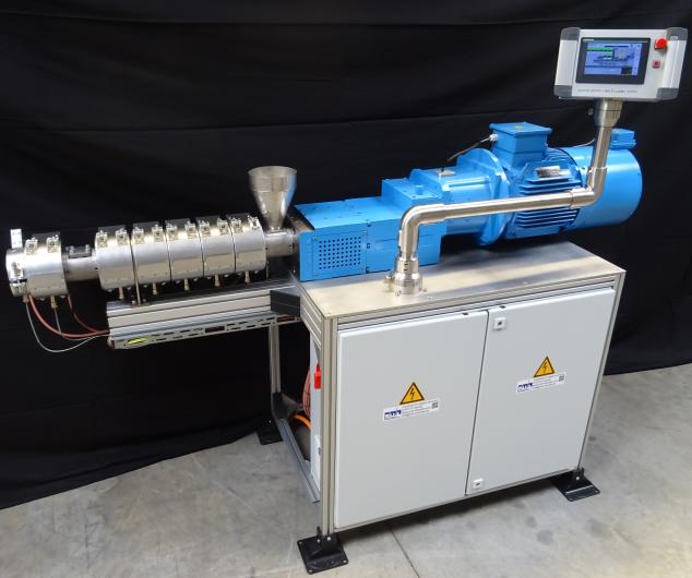 Our twin screw extruder DS25-32d for the production of small batches, e.g. with strand pelletizer is perfectly suitable for trials.